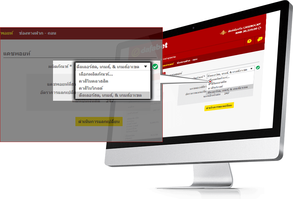 จำนวนเงินสดที่แลกเปลี่ยนเรียบร้อยแล้วจะปรับเข้าสู่บัญชีดีลเลอร์สด/ เกมส์/ เกมส์จำลองของคุณทันที
