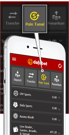 Poin Tunai diberikan setiap kali pemain bertaruh di kasino Dafabet. Setiap 10 satuan mata uang dipertaruhkan, Anda akan mendapat 2 poin tunai. Poin tunai tersebut bisa dikonversikan langsung dan mudah diuangkan.