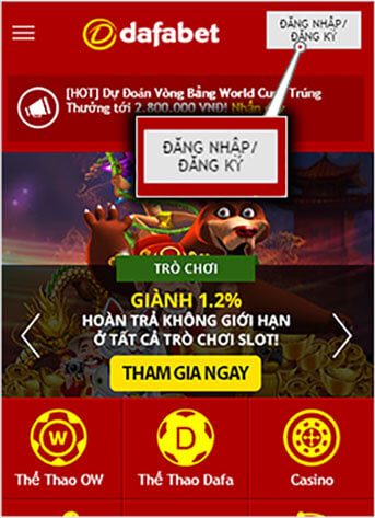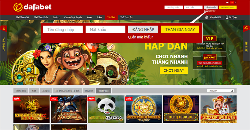 Đăng nhập vào tải khoản ở trang Trò Chơi: