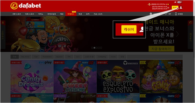 캐쉬 포인트는 회원님이 베팅할 때마다 다파벳 아케이드 회원님에게 수여됩니다.