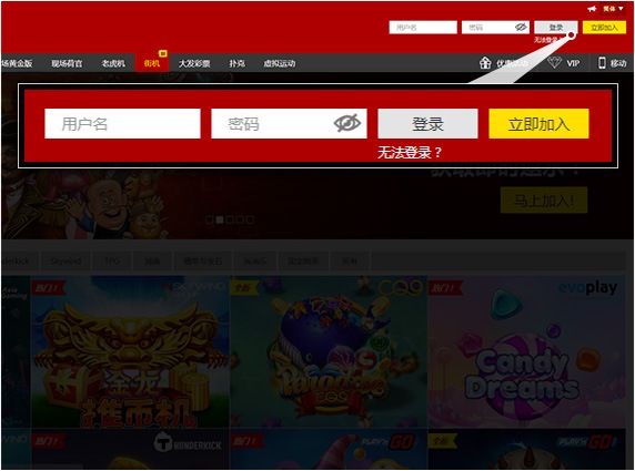 从下拉菜单处选择现场荷官,老虎机和街机,现金积分信息将显示。
