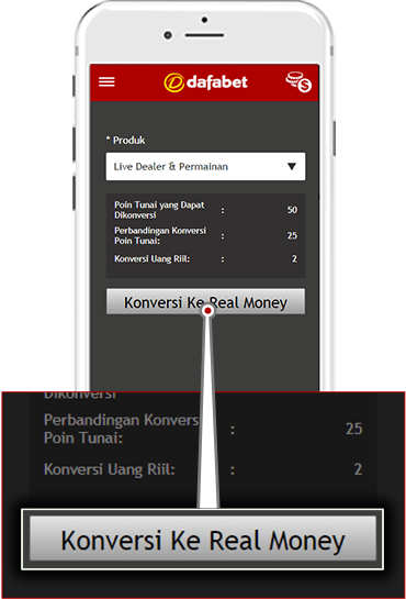 Poin Tunai diberikan setiap kali pemain bertaruh di Dafabet Games. Setiap 10 satuan mata uang dipertaruhkan, Anda akan mendapat 2 poin tunai. Poin tunai tersebut bisa dikonversikan langsung dan mudah diuangkan