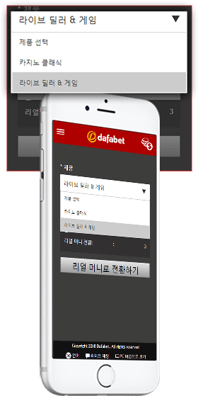회원님의 제품으로 라이브 딜러 및 게임을 선택하십시오.