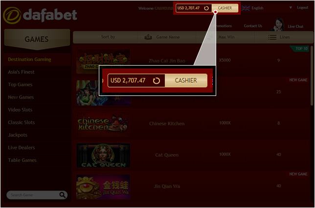 Cash Points are awarded to Dafabet Casino players every time a player bets.