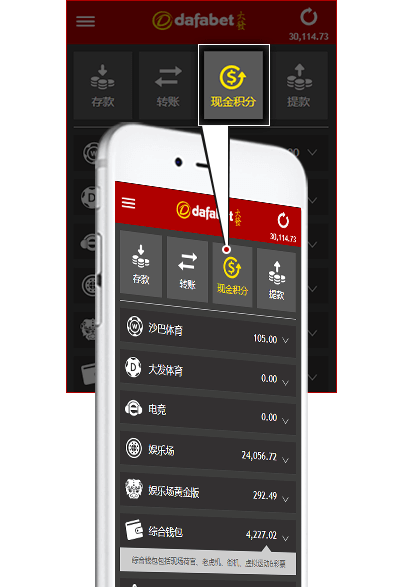 兑换的现金积分将显示在综合钱包(现场荷官、老虎机、街机 & 虚拟运动)余额处。已兑换的现金积分可用于任何游戏或提现。